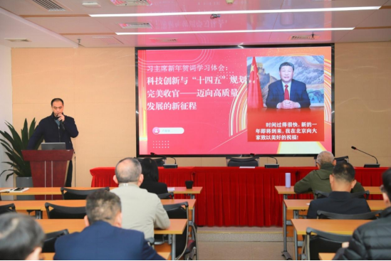 会议期间,支部委员卢懿健以《科技创新与“十四五”规划——迈向高质量发展的新征程——习主席新年贺词学习体会》为题讲授专题党课,他带领大家从因地制宜培育新质生产力、新兴产业的蓬勃发展、科技创新成果的涌现等多个角度,深入回顾了“十四五”规划期间我国在科技创新领域取得的显著成就,详细阐述了“十四五”规划的深远意义,以及科技创新与“十四五”规划的紧密结合对我国迈向高质量发展的新征程重要推动作用。