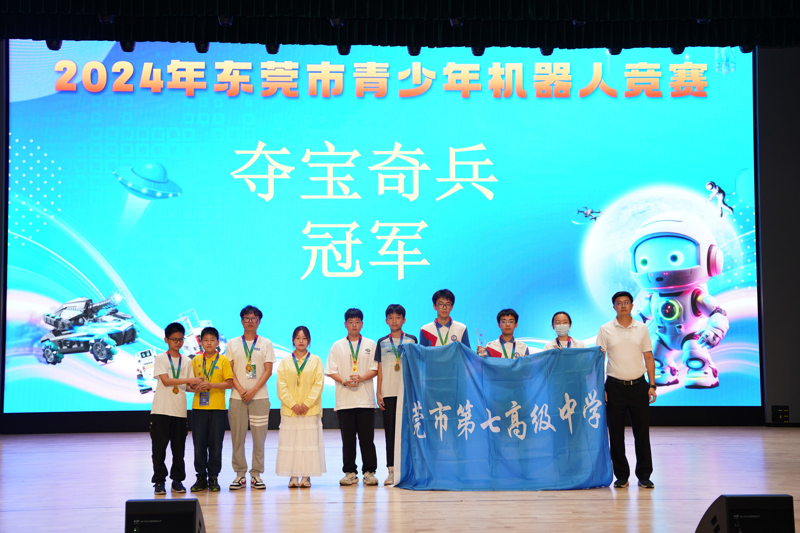 “夺宝奇兵”项目由东莞市常平镇第三小学谢明铮、易哲旭获得小学组冠军,东莞市石排中学王昱智、莫松源获得初中组冠军,东莞市第七高级中学何伟程、李毅锋获得高中组冠军。