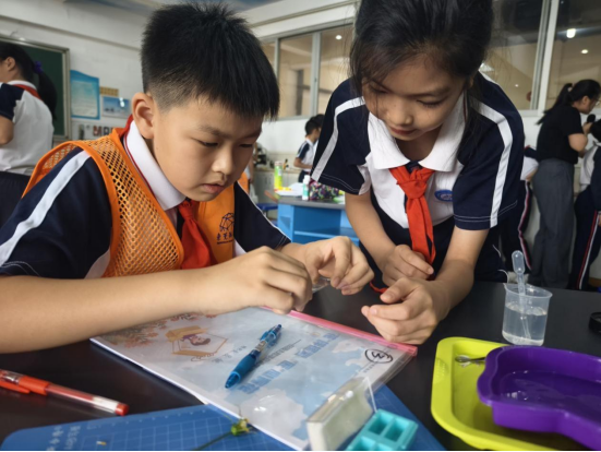 上学期通过馆校合作培养的一批步步高小学生科探小小辅导员,带着在科学馆实践收获的方法技能,也出现在实验操作的各个环节。他们专注的神情、规范的操作显露出探索科学奥秘的光芒,在活动当中传递着榜样力量!